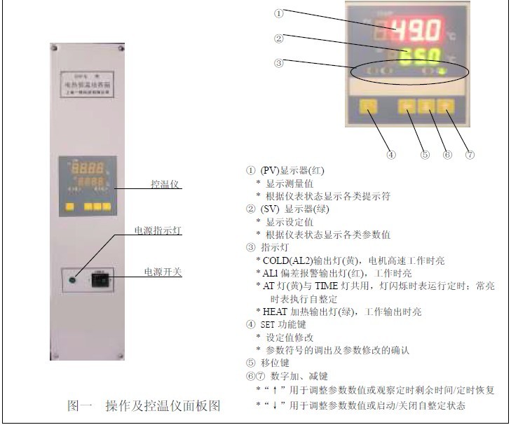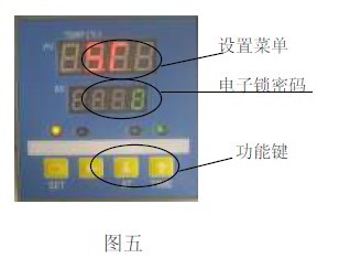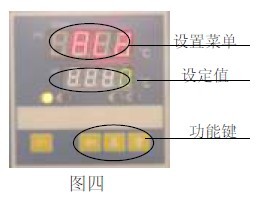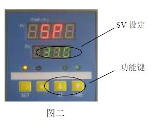 (如右圖所示)當工作室內溫度低于限溫 ℃設定值后保護系統消除,儀表恢復工作。如此循環,直**故障排除。